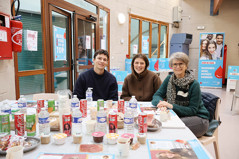 Nous rencontrons aussi un trio de donneurs venus en famille : la maman, son fils et sa petite amie. « J’avais l’habitude de donner mon sang sur mon lieu de travail, mais ca n’a pas eu lieu depuis longtemps, alors j’ai cherché une collecte chez moi, à Fresnes, et mon fils, Jules, qui m’a accompagnée, en a profité pour donner lui aussi », explique Catherine, 59 ans, qui a une amie malade qui a déjà été transfusée deux fois. « Une heure de notre temps peut sauver des vies », résume Catherine. Son fils, Jules, Fresnois de 24 ans, donne son sang pour la quatrième fois : « Tant qu’on n’a pas peur des aiguilles, tout va bien. » Sa petite amie, Jade, a suivi le mouvement familial : « Moi aussi je viens de donner mon sang, c’était ma première fois, c’est super bien organisé et le personnel est très accueillant », dit-elle.