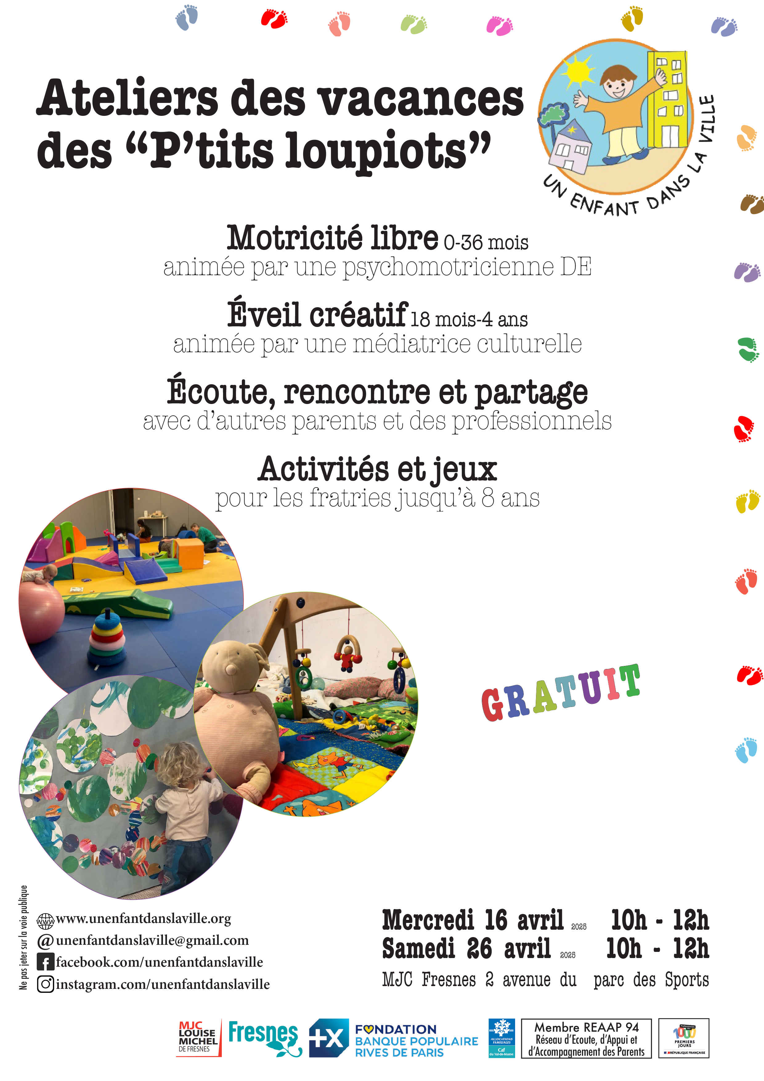 Merci à la Fondation @Banque Populaire Rives de Paris qui nous permet d’accueillir les petits et leur famille gratuitement pendant ces vacances, grâce à son soutien financier pour l’achat de matériel et la rémunération des professionnelles.